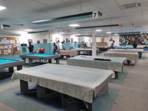 Ce dimanche l’ambiance était aux rencontres amicales mais acharnées : un tournoi interne oppose les membres, que ce soit en carambole libre, bande ou 3 bandes ou en billards à poche (américain, blackball).Les matchs se déroulent encore sur plusieurs semaines, pour plus de souplesse.