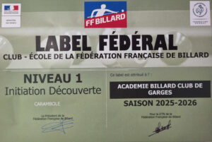Cette année encore, notre club de billard a obtenu la certification d’école de billard « initiation » (niveau 1).